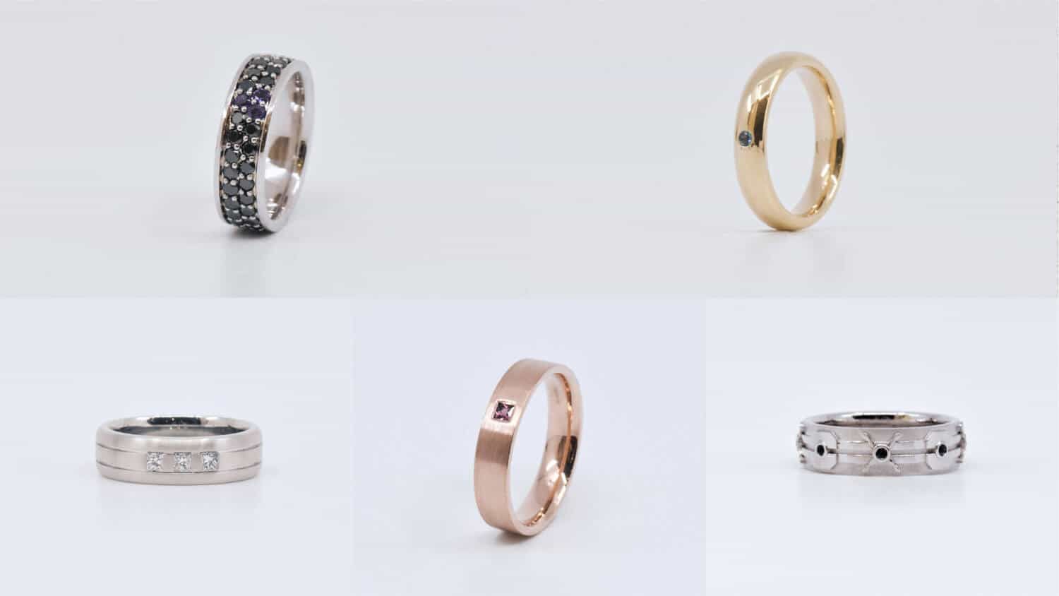 When we’re talking about precious metals, that will be your gold, your rose gold, white gold, yellow gold, and platinum. And when it comes to alternative metals, that includes things like carbon fibre, tungsten, or titanium, to name just a few.