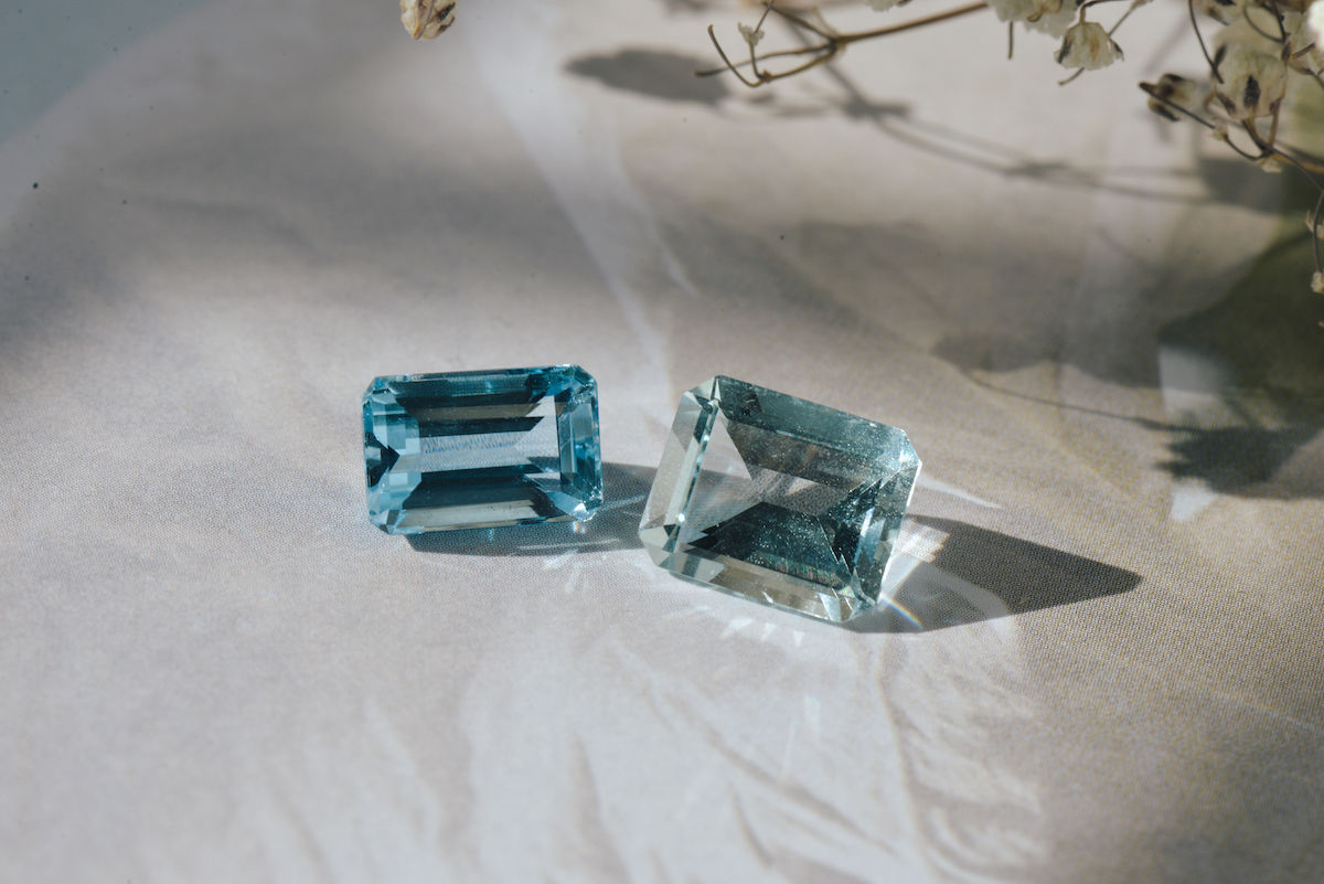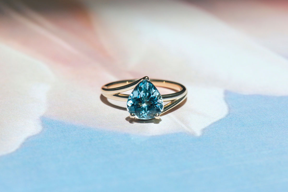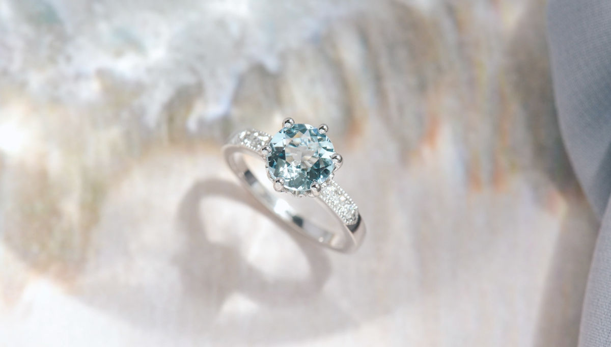 Aquamarine! The word aquamarine comes from the Latin words “aqua” (meaning “water”) and “marina” (meaning “of the sea”). It’s literally named after sea water! Take a moment to envision yourself wearing a stone that has the colour of the sea water.