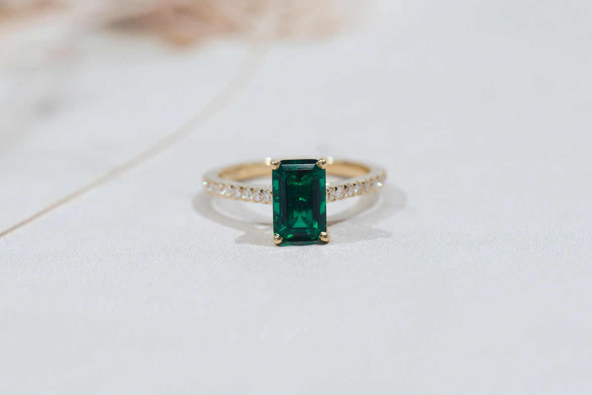 A natural green emerald will have its own map of markings and cloudy areas, making each stone unique, while a lab grown green emerald carries a more consistent green throughout the stone.