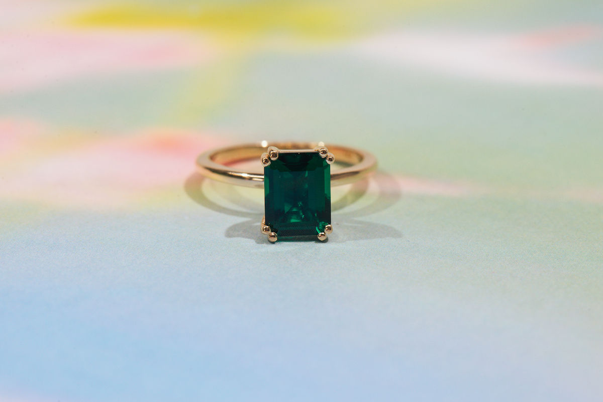 Emerald! That velvety saturated emerald green is like no other. You can tell an emerald green apart from other green stones just by looking at the depth of the green. The green of an emerald is rich, deep, and full of life—like a dense forest, or a flourishing garden.
