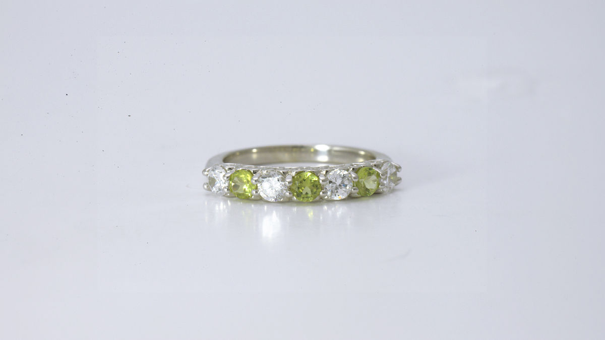 Peridot green is one of a kind. It’s not quite olive, not lime, and not tree green… but more like the vibrant green of a grassy meadow. Imagine tender grass only a couple of weeks old, and you’re running through it—that’s the kind of green peridot brings to mind.