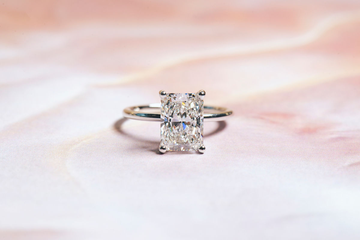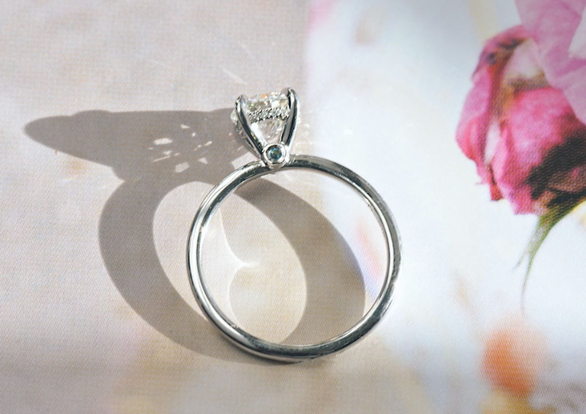 Take a look at these rings—notice the tiny pop of color visible from the profile view beneath the center stone? That’s a birthstone “peek-a-boo”! We can set your birthstone on one side and your partner’s on the other for that personal touch.