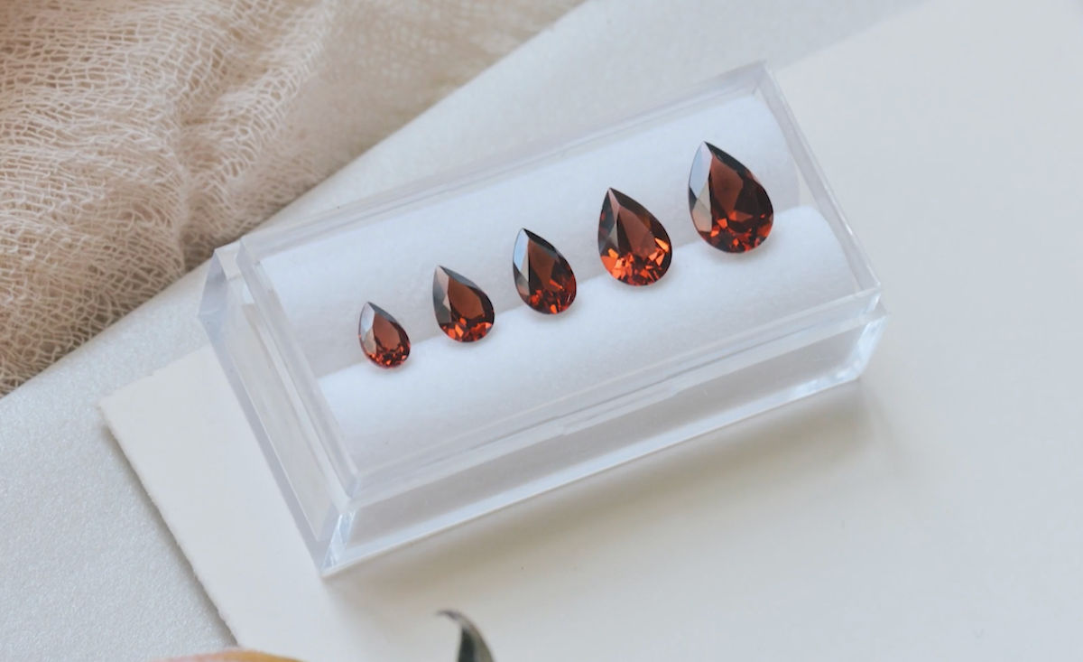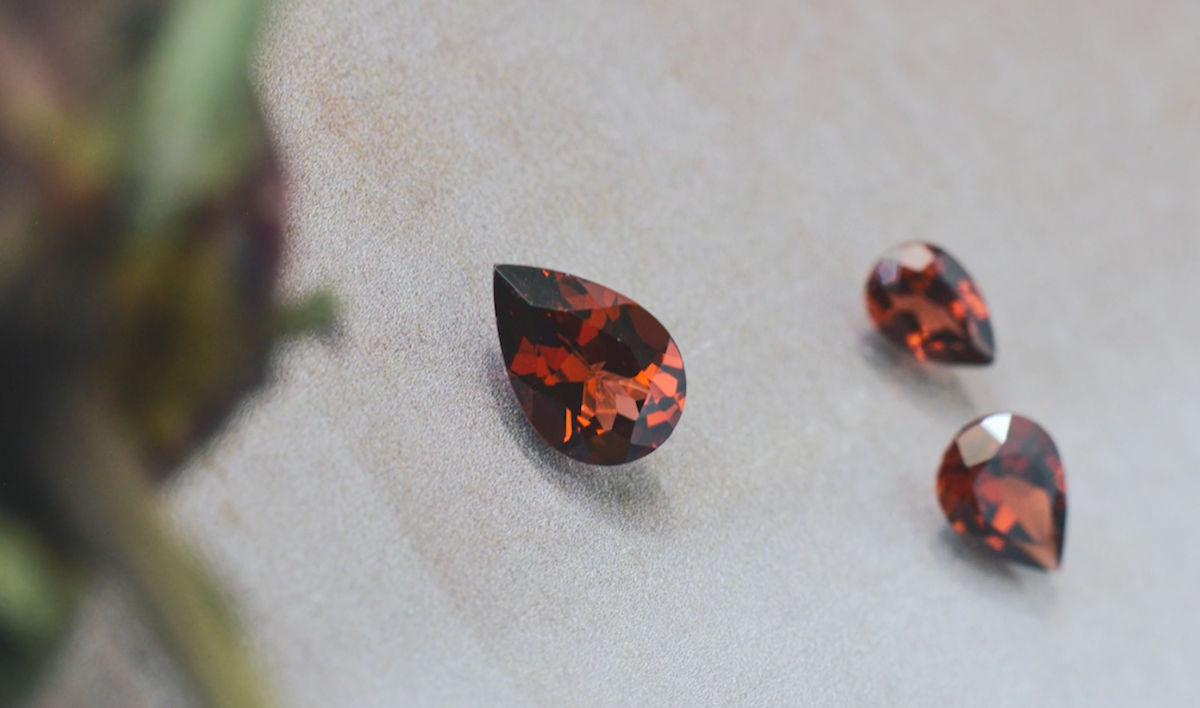 The most traditional garnet is the Mozambique garnet, which boasts a stunning scarlet red with some stones having an almost burnt orange hue to them.