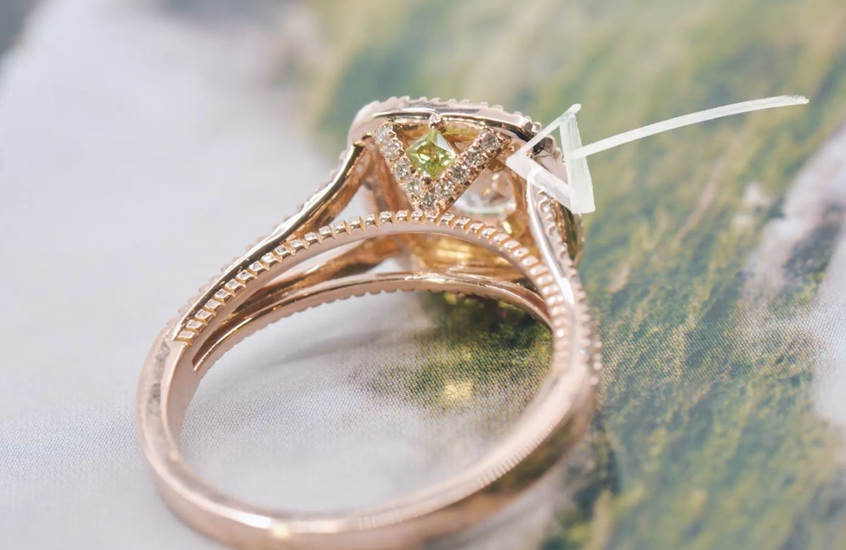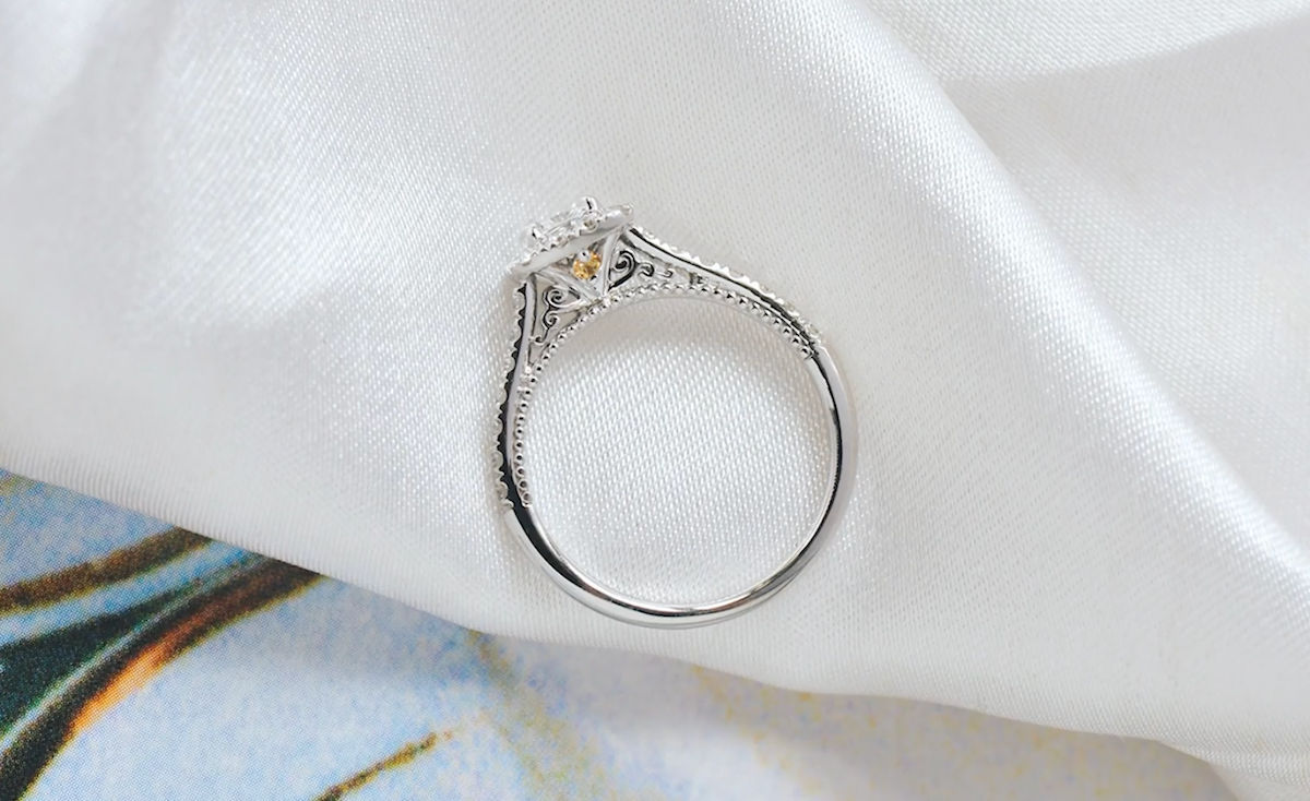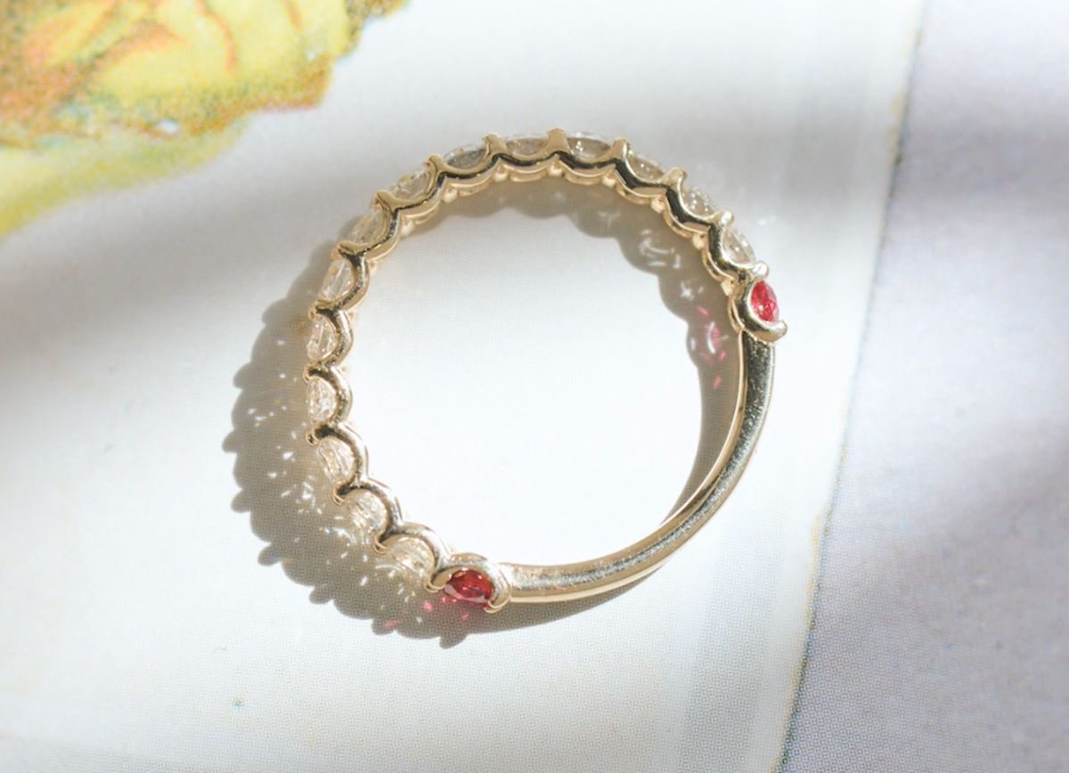 One of the most popular ways to make our custom birthstone rings —without taking attention away from the center stone—is what we call the “peek-a-boo” setting.