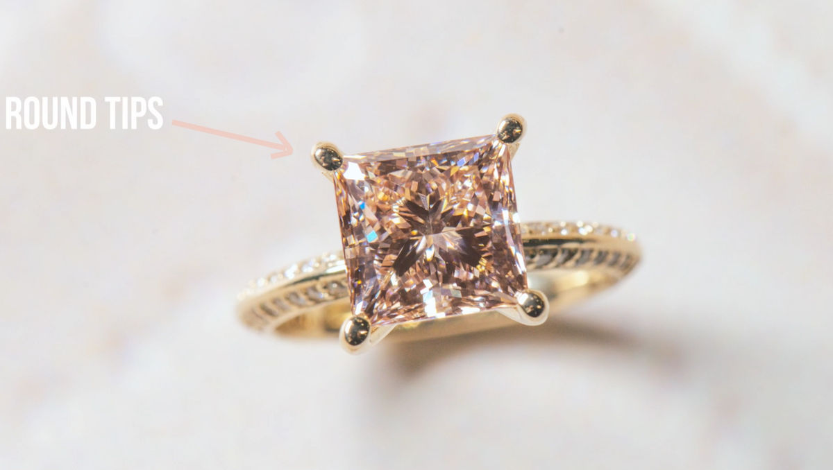 We usually recommend V-tip prongs for princess cuts because their sharp corners can be a potential weak point—V-tips provide excellent protection while maintaining a sleek look. Round-tip prongs are another option, though they need to be a bit chunkier to fully safeguard those delicate edges. Either way, it’s all about balancing security with style!