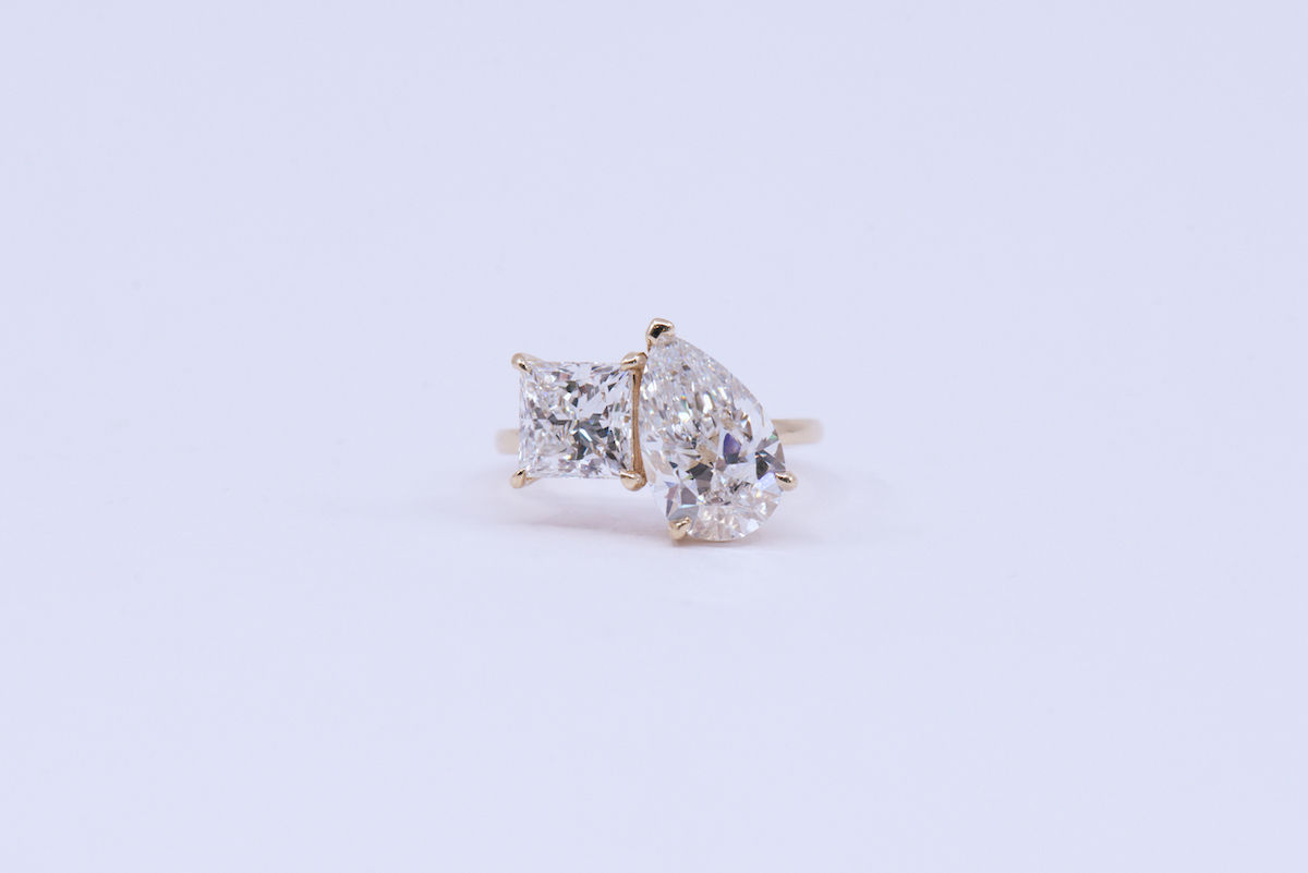 One of our recent favourites? A lab grown diamond pear and cushion combination where the pear tilts inward to close the space, drawing the eye to the center of the design. Every angle is considered.