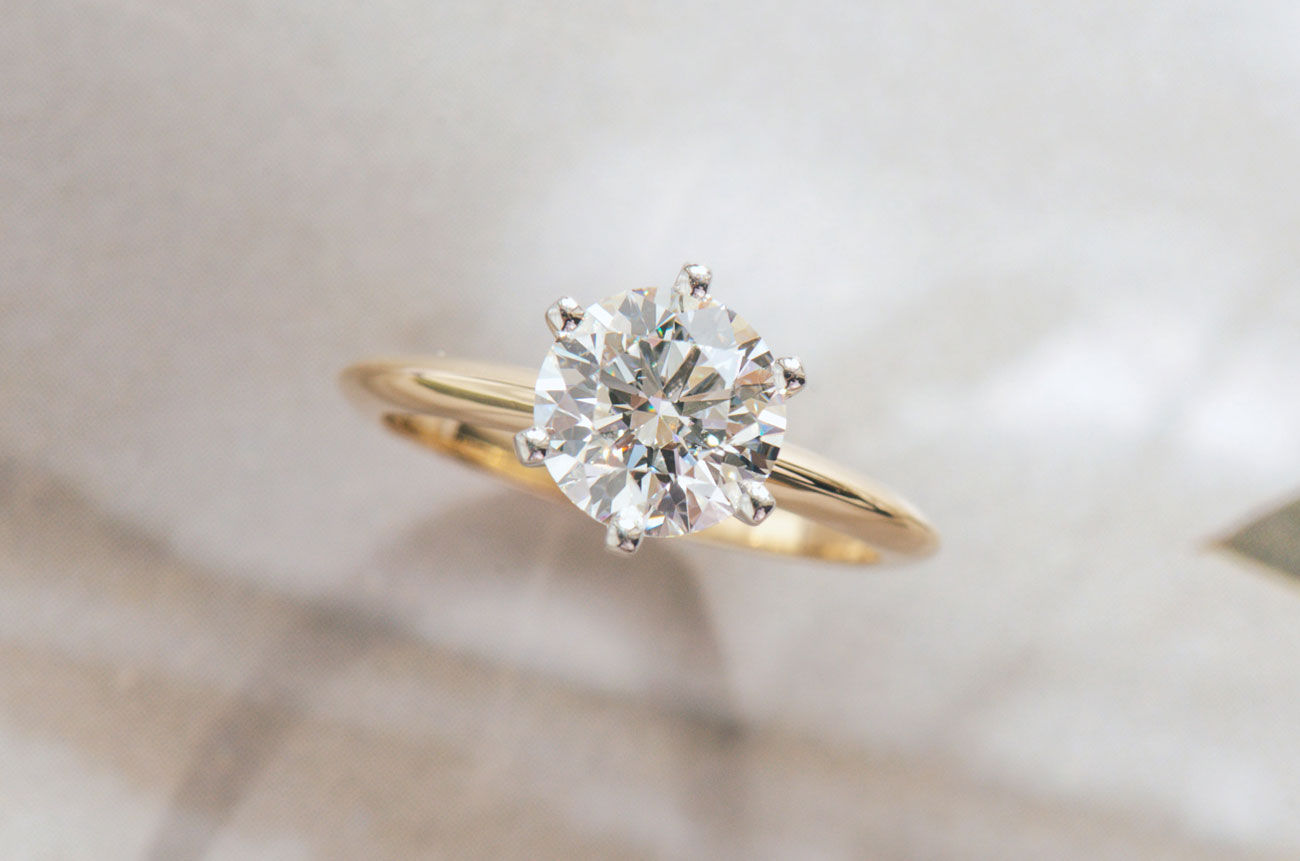 A solitaire diamond engagement ring typically consists of a solitary center stone, set upon a simple band. Its simplicity is its focus: the beauty of a single stone, without distraction from it. It is the most classic and longest enduring symbol of engagement.